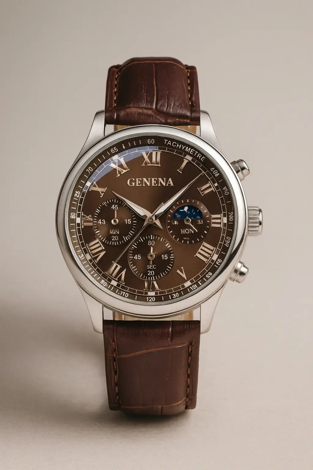 Crafted from a high-density premium alloy, scratch-resistant sapphire glass, and a genuine Italian leather strap, this timepiece defines refinement and exclusivity.